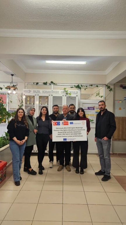 Okulumuzda başarıyla yürütülen Erasmus+ projesi kapsamında, Avrupa Birliği tarafından gönderilen “Bu Okulda Erasmus+ Projesi Yürütülmektedir” tabelası teslim alındı. Bu tabela, okulumuzun uluslararası projelerdeki aktif rolünü ve Avrupa standartlarında eğitim faaliyetlerine verdiği önemi simgelemektedir.